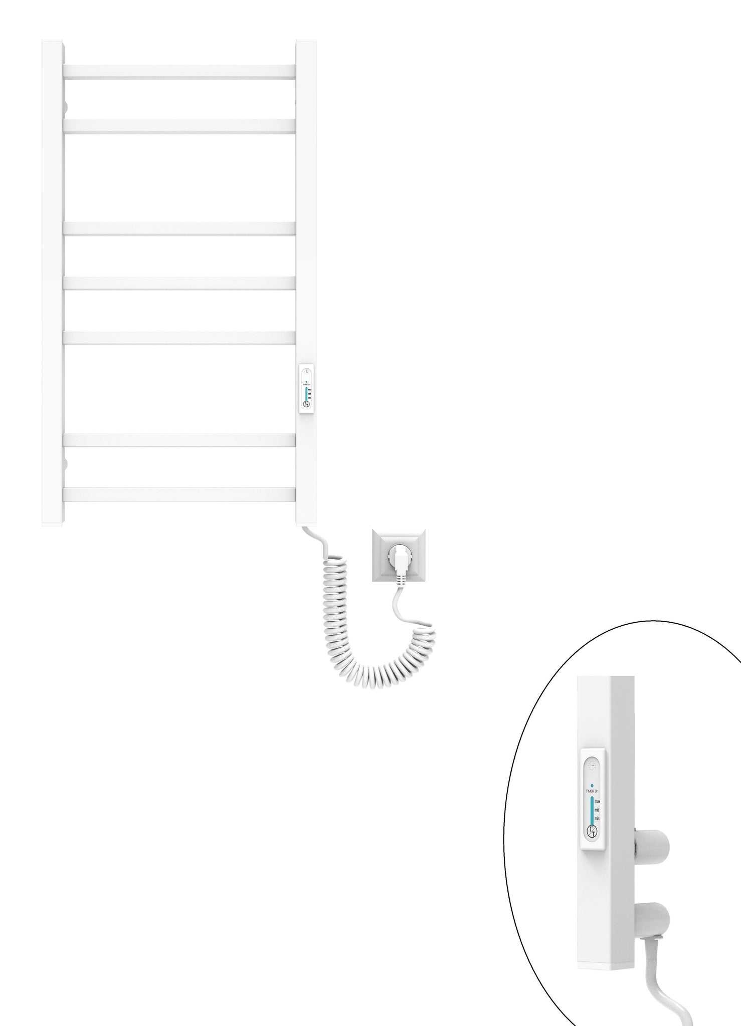Модель оснащена димером з вбудованим таймером, який дозволяє регулювати температуру в трьох режимах та налаштовувати постійний нагрів або на 3 години. Після роботи в режимі TIMER 3h рушникосушарка вимикається автоматично. Максимальний температурний діапазон приладу 45-65°С. Теплова потужність електричної рушникосушарки Елна-Сервіс становить 114 W, що свідчить про високу енергетичну ефективність. Пристрій споживає невелику кількість електроенергії,що дозволяє заощаджувати кошти..