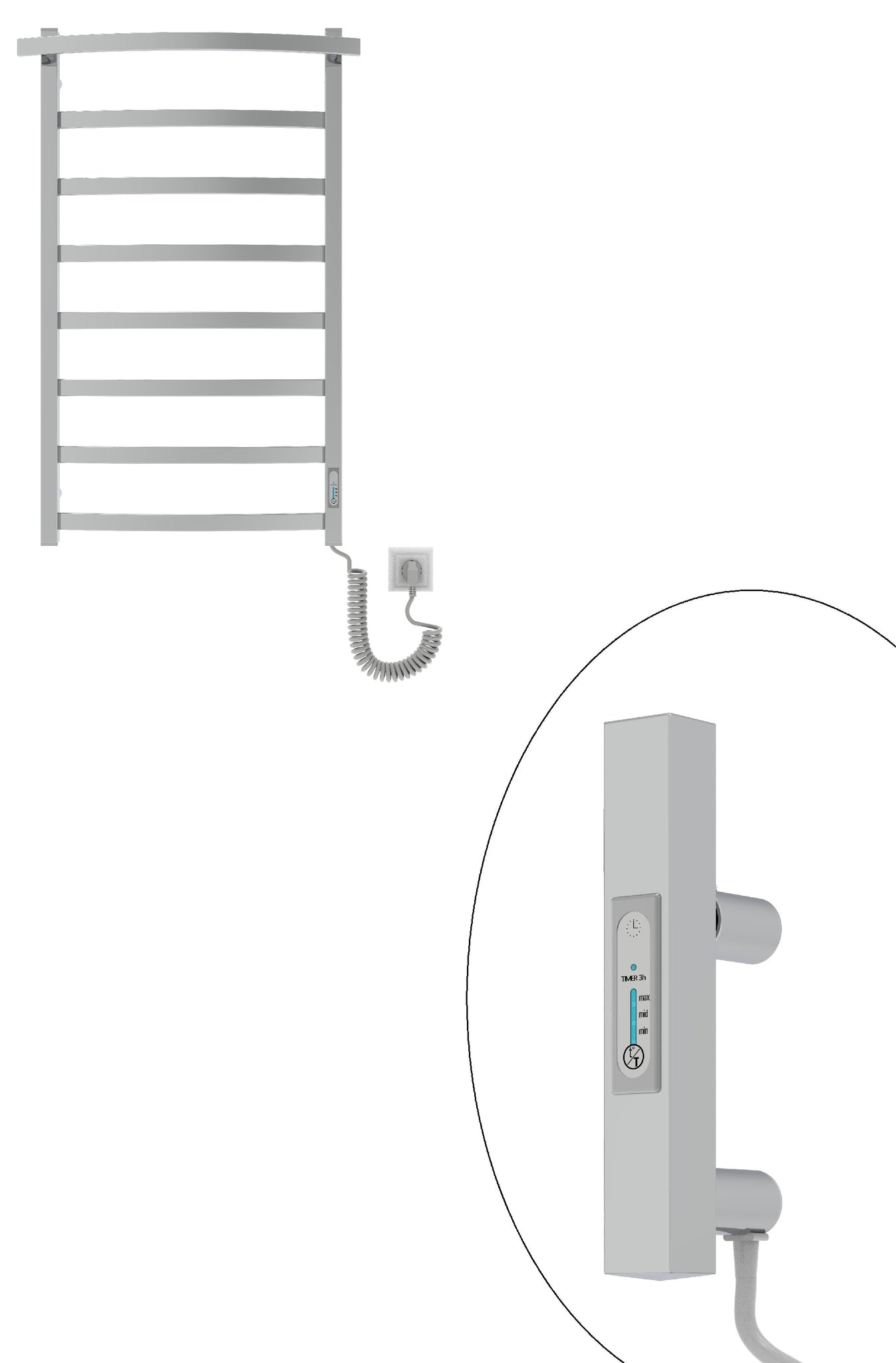 Модель оснащена димером з вбудованим таймером, який дозволяє регулювати температуру в трьох режимах та налаштовувати постійний нагрів або на 3 години. Після роботи в режимі TIMER 3h рушникосушарка вимикається автоматично. Максимальний температурний діапазон приладу 45-65°С. Теплова потужність електричної рушникосушарки Елна-Сервіс становить 123 W, що свідчить про високу енергетичну ефективність. Пристрій споживає невелику кількість електроенергії,що дозволяє заощаджувати кошти..