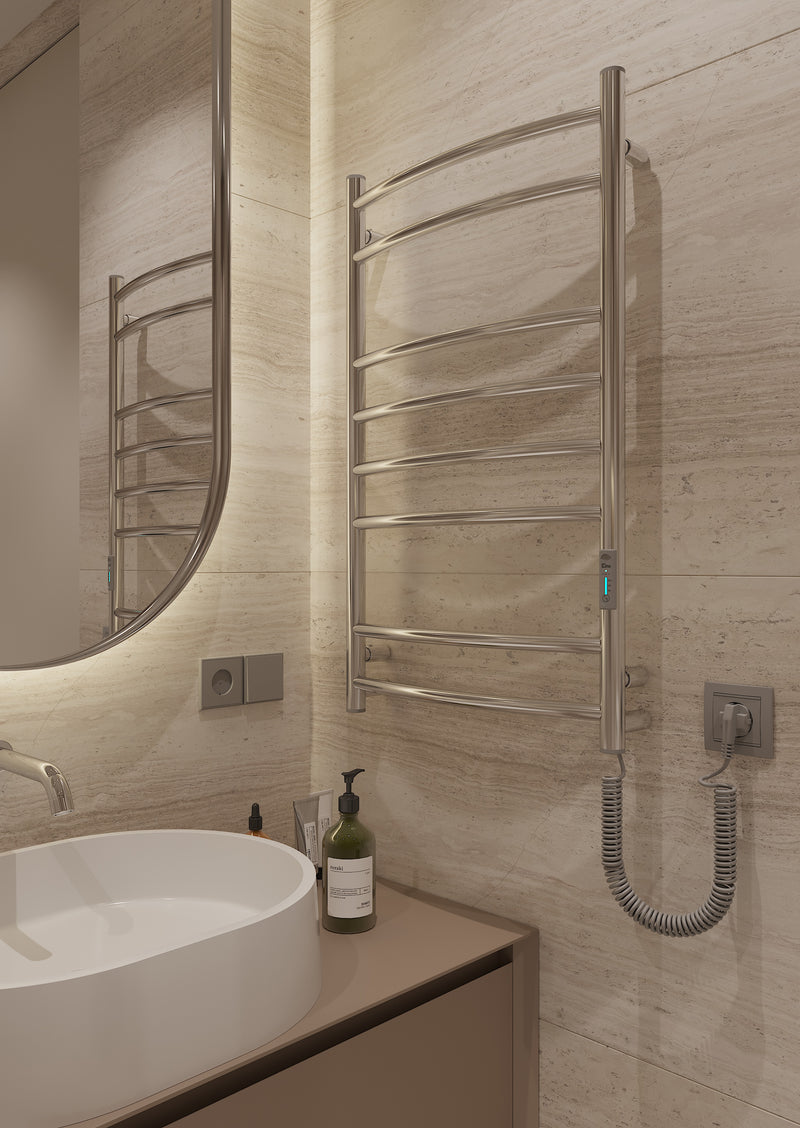 Слідуючи світовим трендам в дизайні інтер’єрів, підприємством Елна-Сервіс виготовлено рушникосушарку з ідеально відполірованою дзеркальною поверхнею для клієнтів, які віддають перевагу холодним відтінкам металу та мінімалістичним формам для створення розкішного ванного простору.
