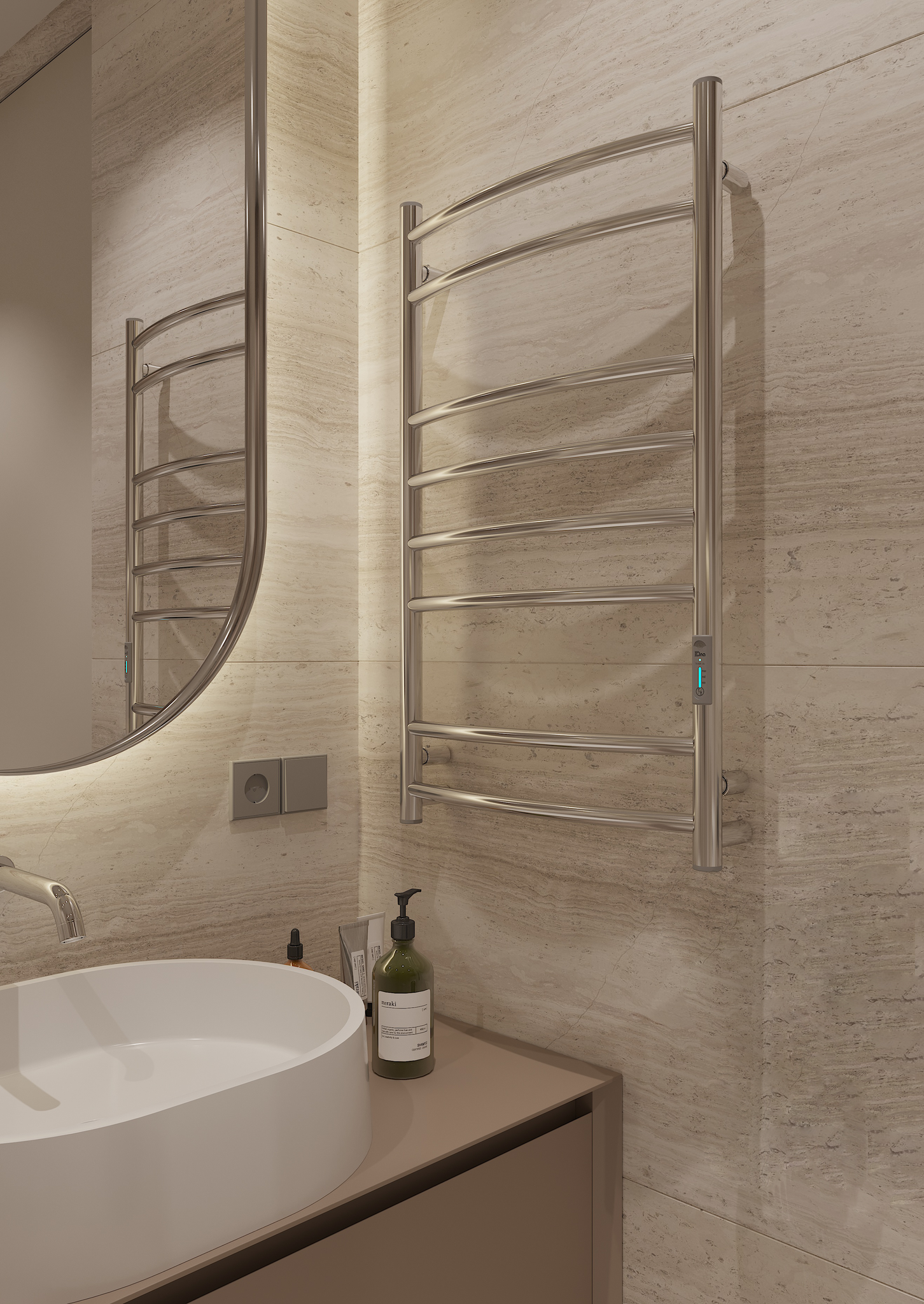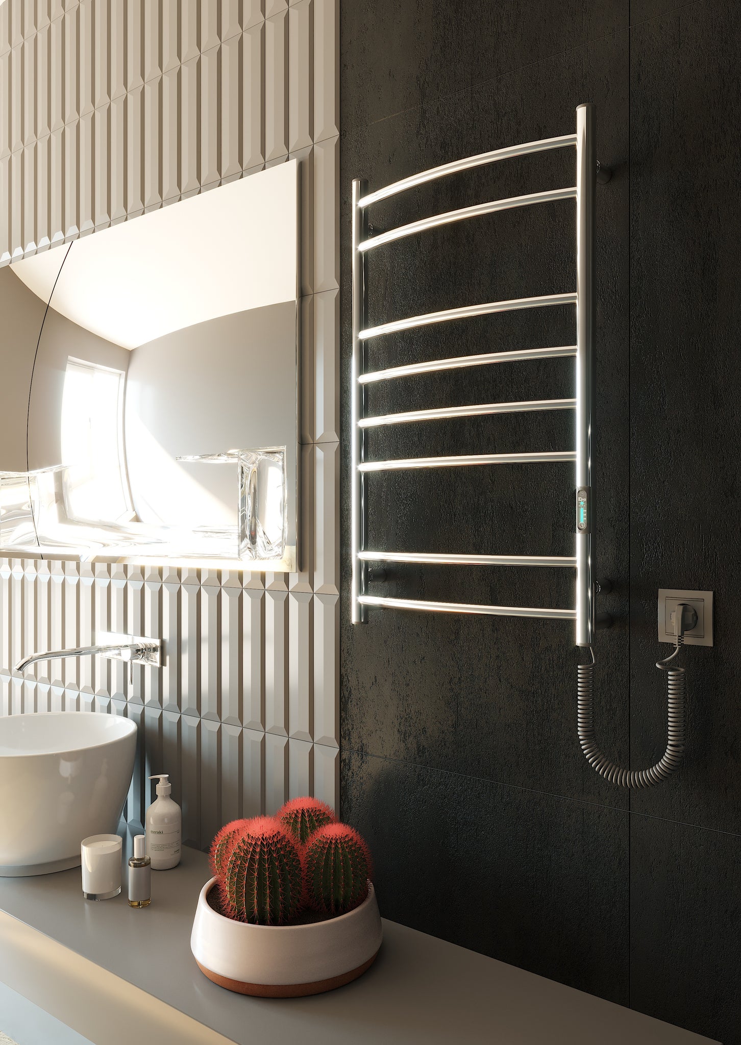 Додаткова опція прихованого монтажу робить вигляд пристрою ще більш мінімалістичним та безпечним. Ще на етапі ремонту його можна змонтувати без зовнішнього шнура живлення. Відсутність звисаючого провода та навіть більше - відсутність розетки на 100% мінімізує будь-які небезпечні ситуації, пов’язані з використанням електропристроїв в приміщенні з високим рівнем вологи, такому як ванна кімната.