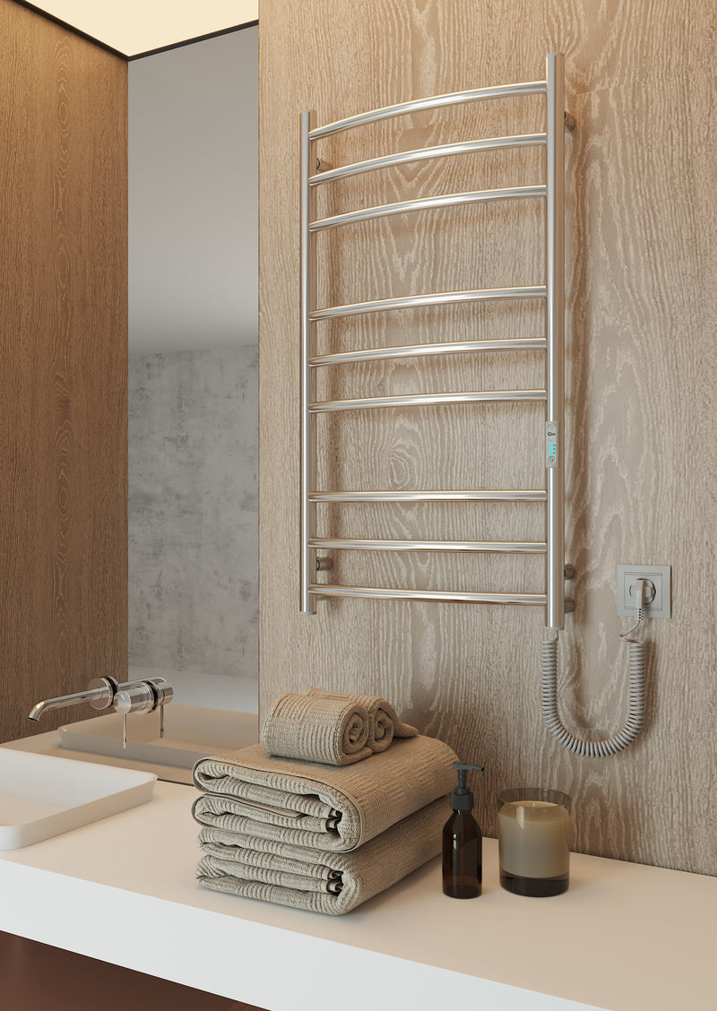 Слідуючи світовим трендам в дизайні інтер’єрів, підприємством Елна-Сервіс виготовлено рушникосушарку з ідеально відполірованою дзеркальною поверхнею для клієнтів, які віддають перевагу холодним відтінкам металу та мінімалістичним формам для створення розкішного ванного простору.