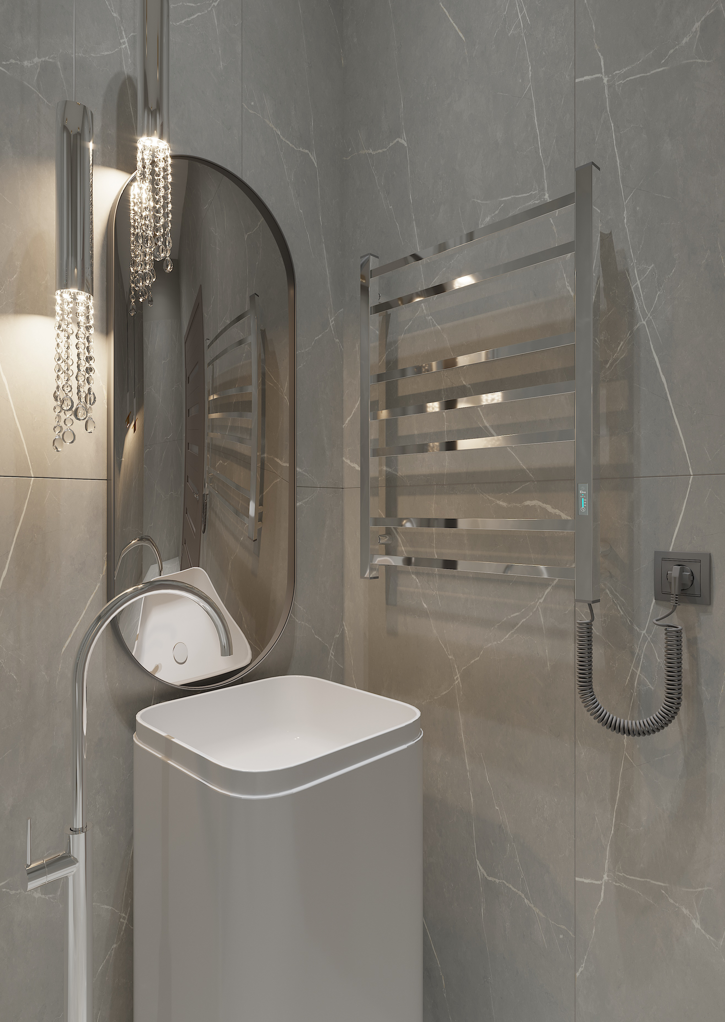 Додаткова опція прихованого монтажу робить вигляд пристрою ще більш мінімалістичним та безпечним. Ще на етапі ремонту його можна змонтувати без зовнішнього шнура живлення. Відсутність звисаючого провода та навіть більше - відсутність розетки на 100% мінімізує будь-які небезпечні ситуації, пов’язані з використанням електропристроїв в приміщенні з високим рівнем вологи, такому як ванна кімната.