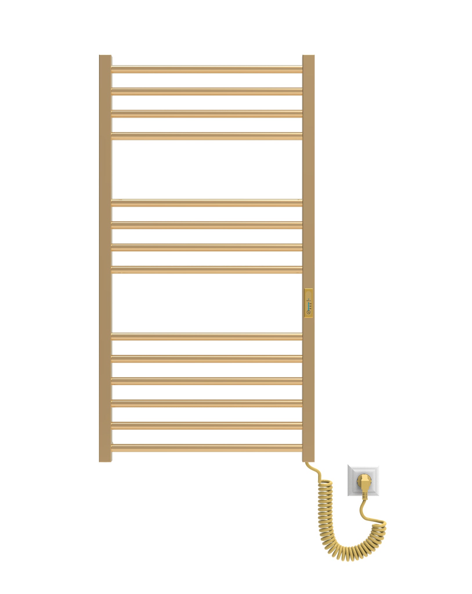 Слідуючи за світовими трендами в дизайні інтер'єру, підприємством Елна-Сервіс створена рушникосушарка з красивим блискучим золотим покриттям для клієнтів, які надають перевагу теплим відтінкам металу. Електрична сушарка для ванної кімнати виготовлена з полерованої нержавіючої сталі, а її поверхня позолочена методом нідрид титанового напилення. Ідеально позолочене покриття зберігає свої технічні характеристики протягом десятків років, а дзеркальна поверхня пристрою з вишуканим золотим відтінком підкреслить розкішну атмосферу інтер’єру ванної кімнати.