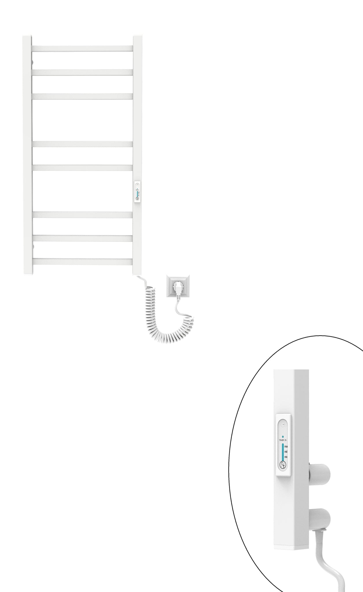 Модель оснащена димером з вбудованим таймером, який дозволяє регулювати температуру в трьох режимах та налаштовувати постійний нагрів або на 3 години. Після роботи в режимі TIMER 3h рушникосушарка вимикається автоматично. Максимальний температурний діапазон приладу 45-65°С. Теплова потужність електричної рушникосушарки Елна-Сервіс становить 144 W, що свідчить про високу енергетичну ефективність. Пристрій споживає невелику кількість електроенергії,що дозволяє заощаджувати кошти..