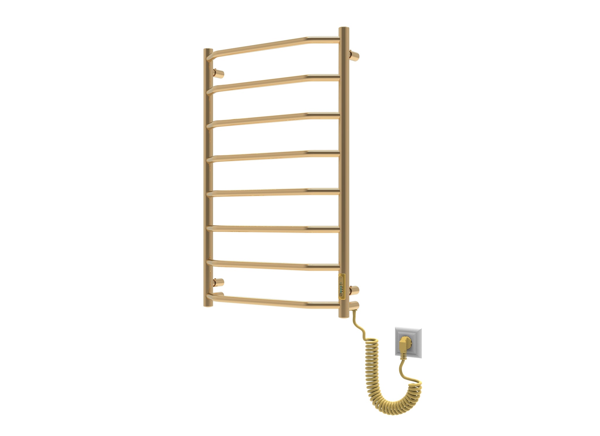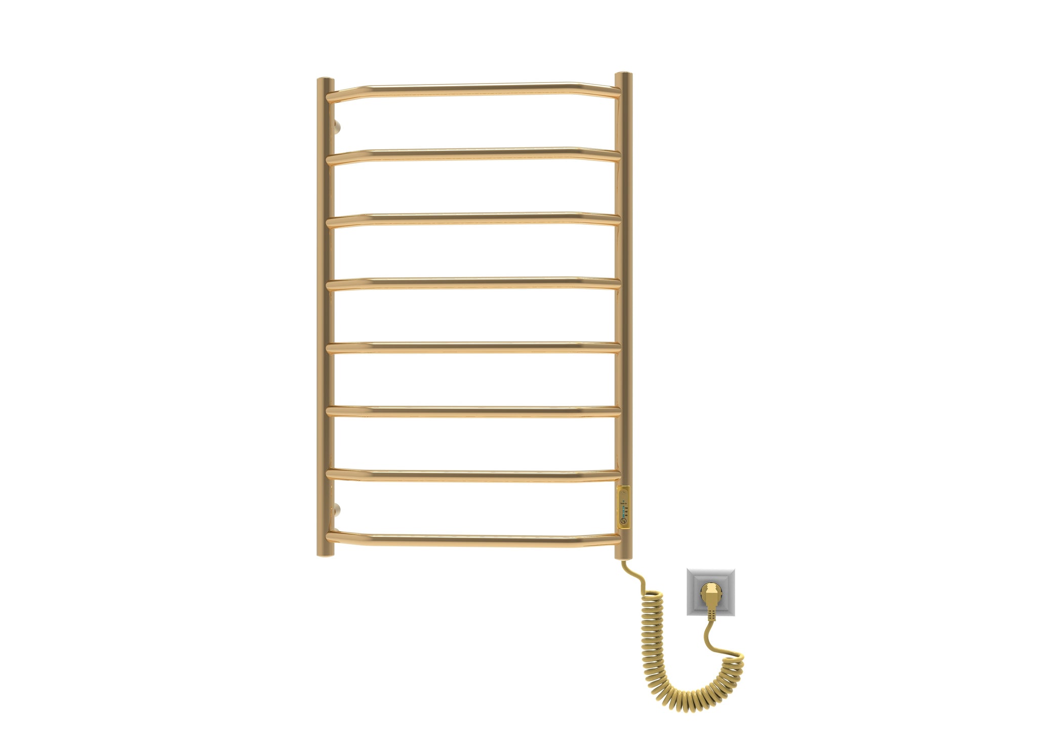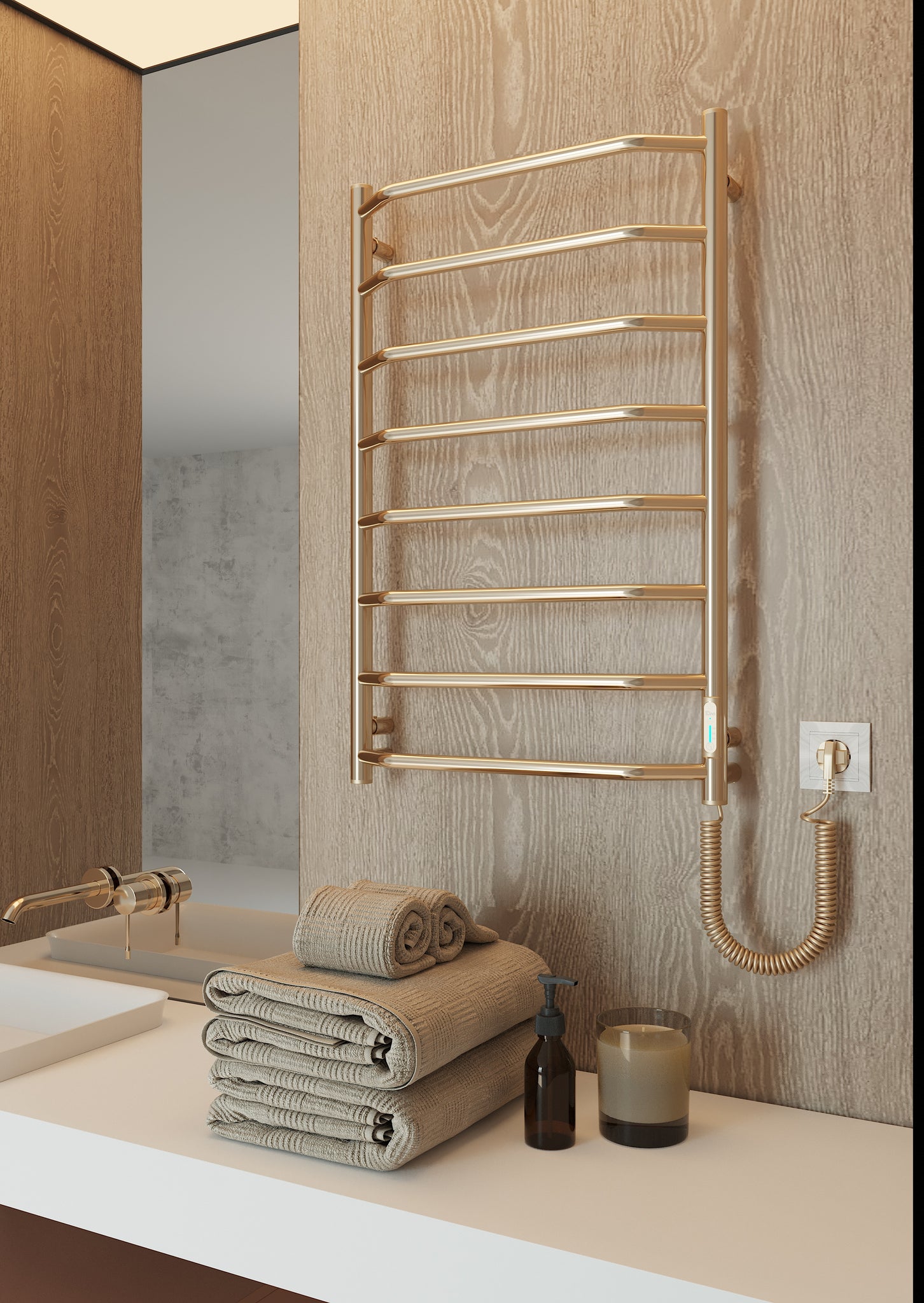 Слідуючи за світовими трендами в дизайні інтер'єру, підприємством Елна-Сервіс створена рушникосушарка з красивим блискучим золотим покриттям для клієнтів, які надають перевагу теплим відтінкам металу. Електрична сушарка для ванної кімнати виготовлена з полірованої нержавіючої сталі, а її поверхня позолочена методом нідрид титанового напилення. Ідеально позолочене покриття зберігає свої технічні характеристики протягом десятків років, а дзеркальна поверхня пристрою з вишуканим золотим відтінком підкреслить розкішну атмосферу інтер’єру ванної кімнати.