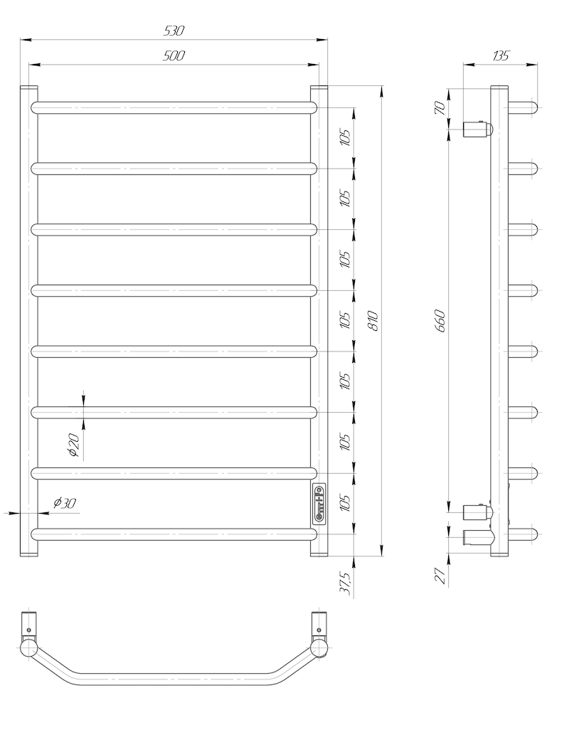 Трапеція це повністю електричний пристрій (сушарка для рушників), який дуже зручний у використанні. Він не потребує підключення до системи центрального опалення, його можна підключити в будь-якому місці, де є доступ до електроенергії. Він має сухий ТЕН всередині і не потребує жодних додаткових теплоносіїв. Достатньо підключити його до електричної мережі - і він працюватиме! Сам пристрій нагрівається до максимальної температури всього за декілька хвилин. Це надзвичайно зручно, коли потрібно швидко висушити білизну або підігріти рушник для приємного обтирання після прийняття душу.
