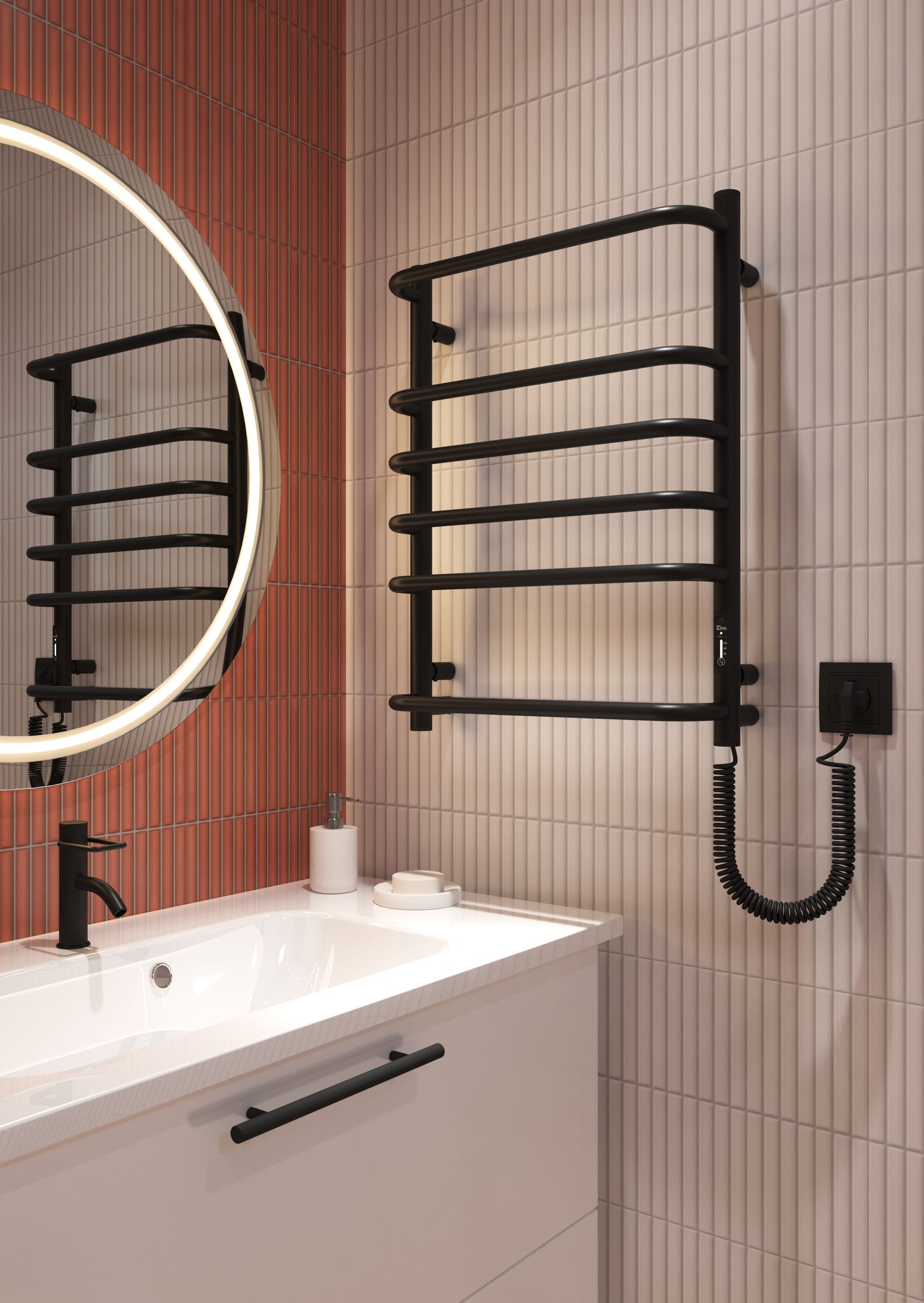 Додаткова опція прихованого монтажу робить вигляд пристрою ще більш мінімалістичним та безпечним. Ще на етапі ремонту його можна змонтувати без зовнішнього шнура живлення. Відсутність звисаючого провода та навіть більше - відсутність розетки на 100% мінімізує будь-які небезпечні ситуації, пов’язані з використанням електропристроїв в приміщенні з високим рівнем вологи, такому як ванна кімната.