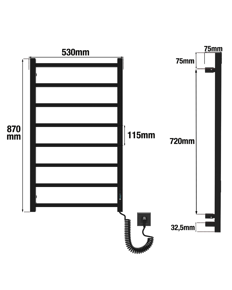 Атрія - це повністю електричний пристрій, який дуже зручний у використанні. Він не потребує підключення до системи центрального опалення, його можна підключити в будь-якому місці, де є доступ до розетки. Він має сухий ТЕН всередині і не потребує жодних додаткових теплоносіїв. Достатньо підключити його до електричної мережі - і він працюватиме! Сам пристрій нагрівається до максимальної температури всього за декілька хвилин. Це надзвичайно зручно, коли потрібно швидко висушити білизну або підігріти рушник для приємного обтирання після прийняття душу.