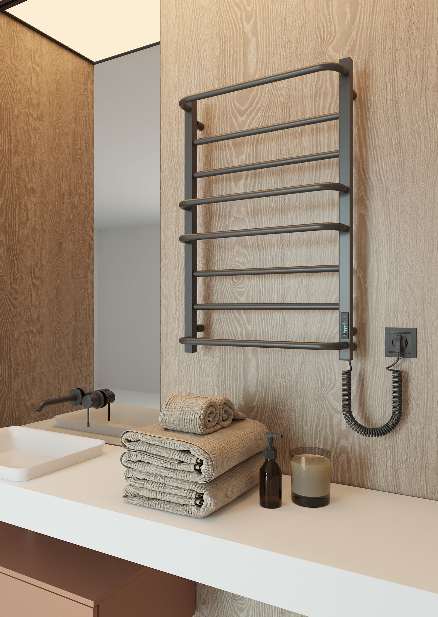 Додаткова опція прихованого монтажу робить вигляд пристрою ще більш мінімалістичним та безпечним. Ще на етапі ремонту його можна змонтувати без зовнішнього шнура живлення. Відсутність звисаючого провода та навіть більше - відсутність розетки на 100% мінімізує будь-які небезпечні ситуації, пов’язані з використанням електропристроїв в приміщенні з високим рівнем вологи, такому як ванна кімната.