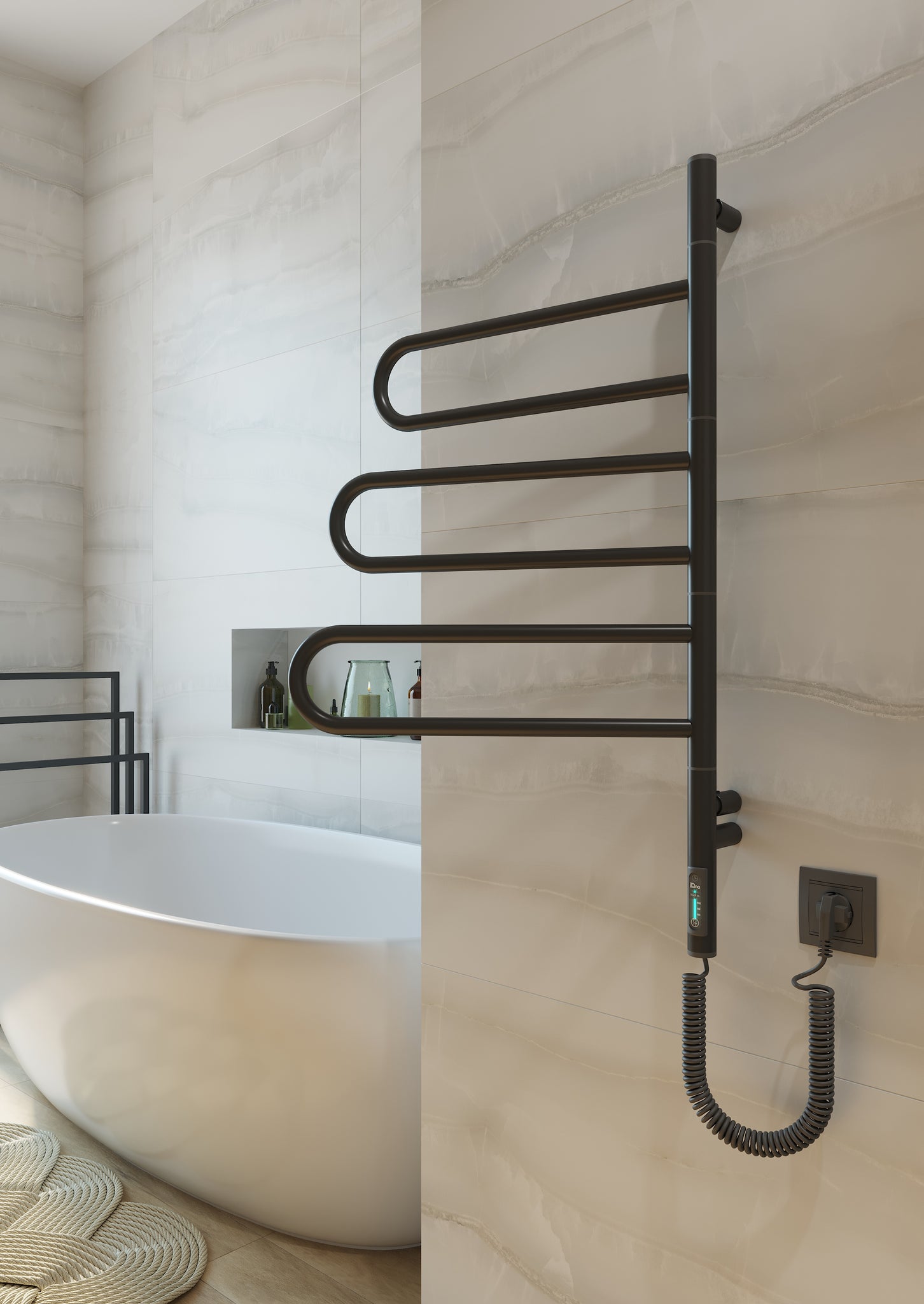 Додаткова опція прихованого монтажу робить вигляд пристрою ще більш мінімалістичним та безпечним. Ще на етапі ремонту його можна змонтувати без зовнішнього шнура живлення. Відсутність звисаючого провода та навіть більше - відсутність розетки на 100% мінімізує будь-які небезпечні ситуації, пов’язані з використанням електропристроїв в приміщенні з високим рівнем вологи, такому як ванна кімната.