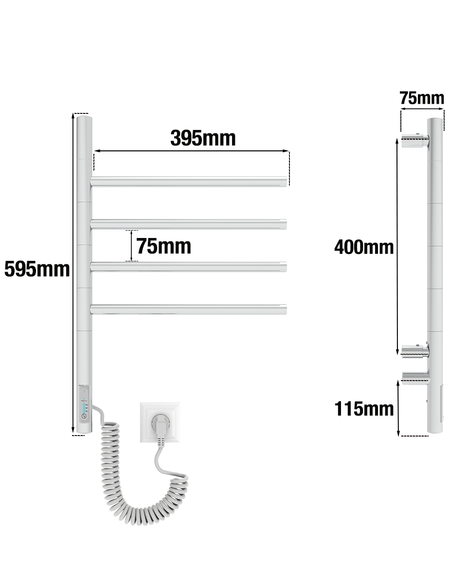 Вертикаль - це повністю електричний пристрій, який дуже зручний у використанні. Він не потребує підключення до системи центрального опалення, його можна підключити в будь-якому місці, де є доступ до розетки. Він має сухий ТЕН всередині і не потребує жодних додаткових теплоносіїв. Достатньо підключити його до електричної мережі - і він працюватиме! Сам пристрій нагрівається до максимальної температури всього за декілька хвилин. Це надзвичайно зручно, коли потрібно швидко висушити білизну або підігріти рушник для приємного обтирання після прийняття душу.