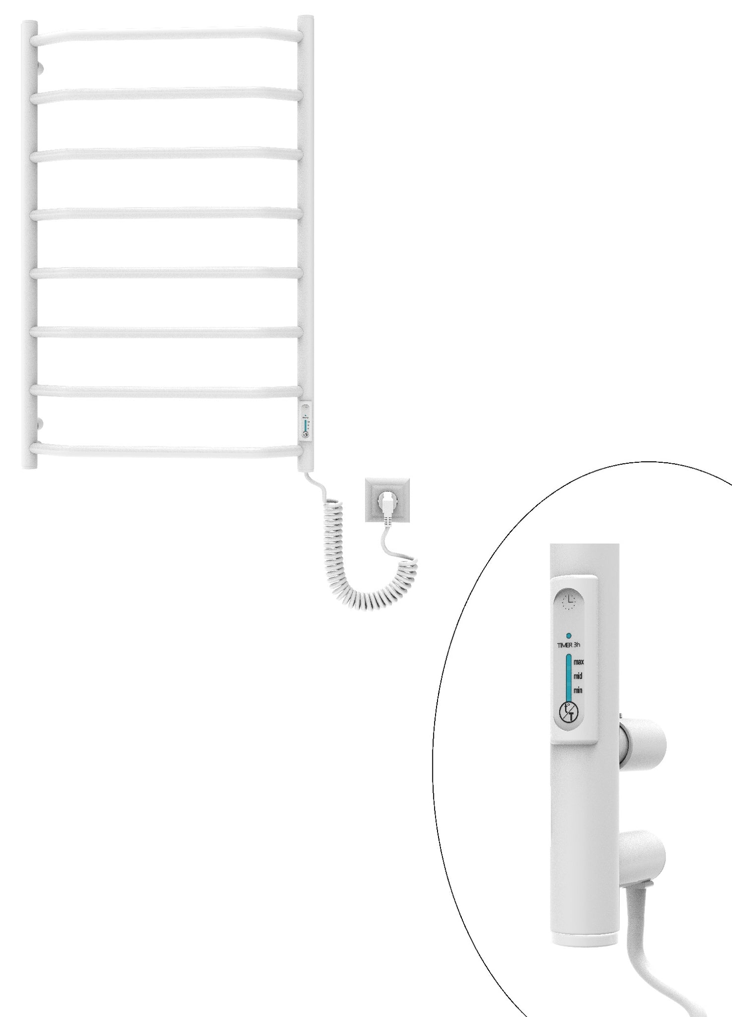 Модель оснащена димером з вбудованим таймером, який дозволяє регулювати температуру в трьох режимах та налаштовувати постійний нагрів або на 3 години. Після роботи в режимі TIMER 3h рушникосушарка вимикається автоматично. Максимальний температурний діапазон приладу 45-65°С. Теплова потужність електричної рушникосушарки Елна-Сервіс становить 157W, що свідчить про високу енергетичну ефективність. Пристрій споживає невелику кількість електроенергії,що дозволяє заощаджувати кошти..